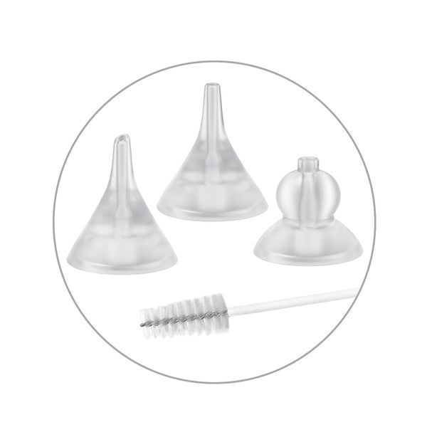 De reiniger werkt stil, is eenvoudig schoon te maken en heeft zachte siliconen opzetstukjes speciaal voor kleine neusjes. Een must-have in elke babyuitzet.