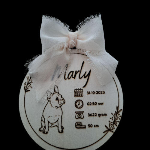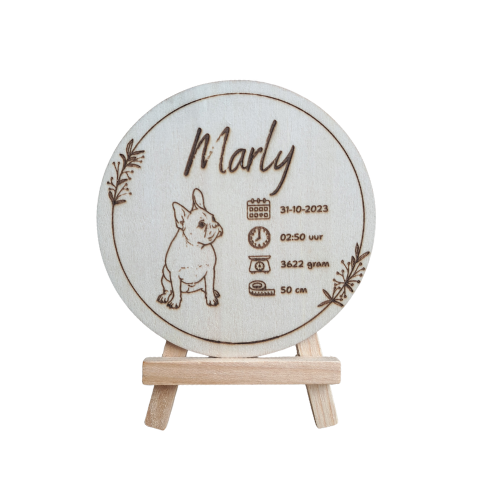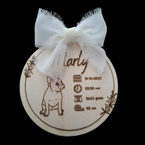 Onze geboortebordjes worden gemaakt van 3 mm populieren multiplex. Door het graveren kunnen de randjes soms wat scherp aanvoelen. Standaard worden de bordjes niet geschuurd, maar op verzoek kunnen we ze voor je beitsen. ✨