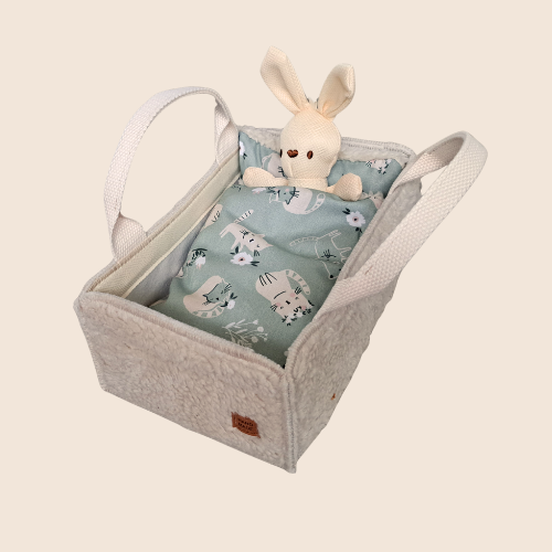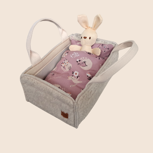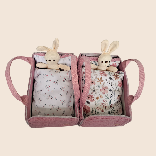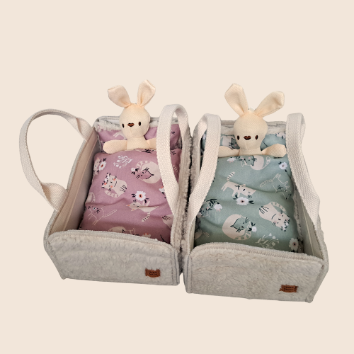 Laat de fantasie van je kindje tot leven komen met dit schattige handgemaakte knuffelbedje! Perfect voor een favoriete knuffel of pop — een eigen plekje om te slapen, spelen en overal mee naartoe te nemen. Dankzij het draagbare tasje-ontwerp kan je kind het bedje makkelijk meenemen op avontuur. Van logeerpartijtjes, rollenspellen of knuffelmomenten op de bank: dit bedje zorgt voor urenlang speelplezier en geborgenheid.